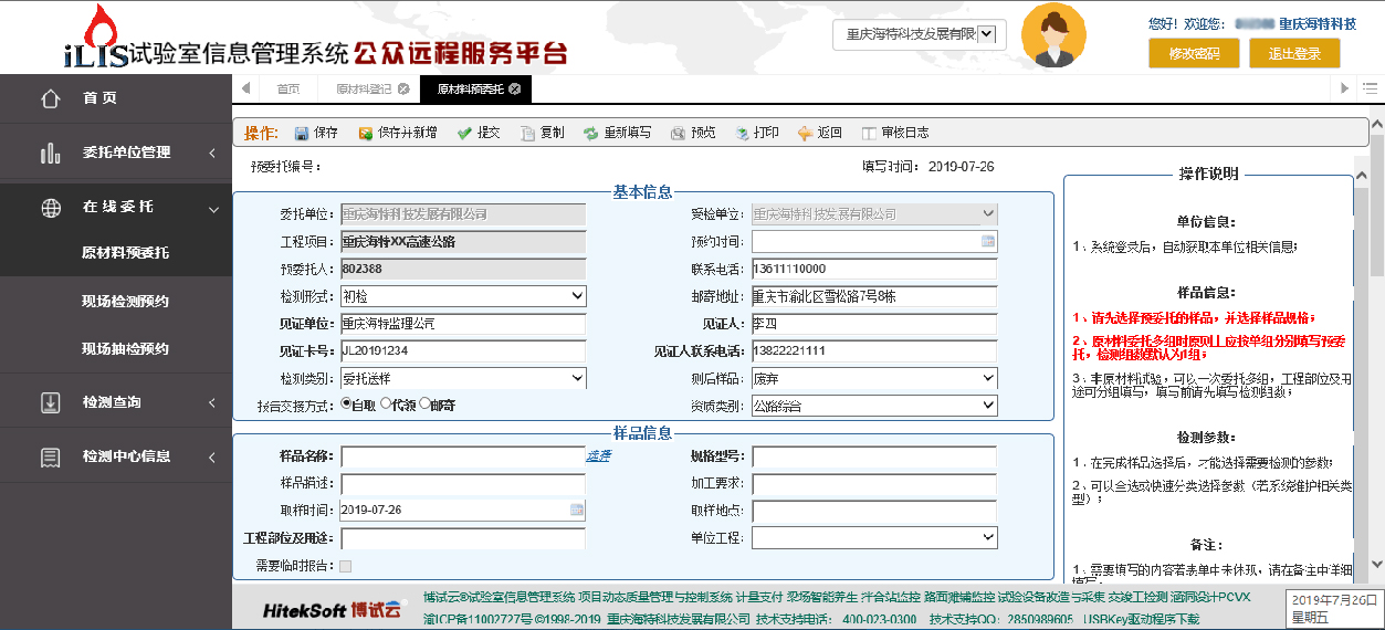 (委托收樣,樣品管理、合同管理、收費(fèi)管理、檢測(cè)/審核/批準(zhǔn)管理,報(bào)告打印管理)